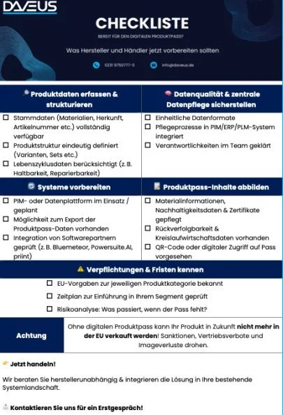 The digital product passport will become the basis for sustainability, transparency, and competitive advantages in the EU. Companies that act early will ensure compliance, avoid fines, and gain strategic advantages in the market.