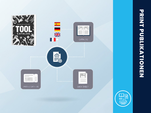 Automatisiertes Ausspielen von Produktdaten in Kataloge, Datenblätter, Flyer oder Etiketten. Ob vollautomatisch generiert oder mit kreativem Freigabeprozess – in allen Sprachen, die Du benötigst. Mit Publikationsplanung, Whiteboarding und Notizen im Freigabeprozess behältst Du die Kontrolle über Deine Printmedien. So entstehen konsistente, mehrsprachige Druckerzeugnisse effizient und in höchster Qualität – vom ersten Entwurf bis zur finalen Produktion.